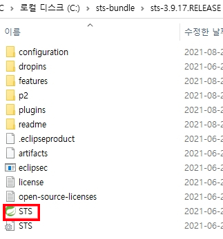 sts-bundle\sts-3.9.17.RELEASE 경로의 STS 실행