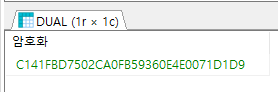 SELECT HEX(AES_ENCRYPT('01234567','abc')) AS 암호화 FROM DUAL;
