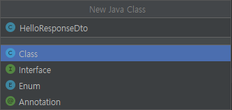 com.IntelliJProject.book.springboot.web.dto -> HelloResponseDto 클래스 생성