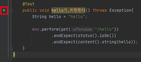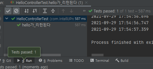test폴더에 동일 패키지 생성 후 HelloControllerTest 클래스 작성