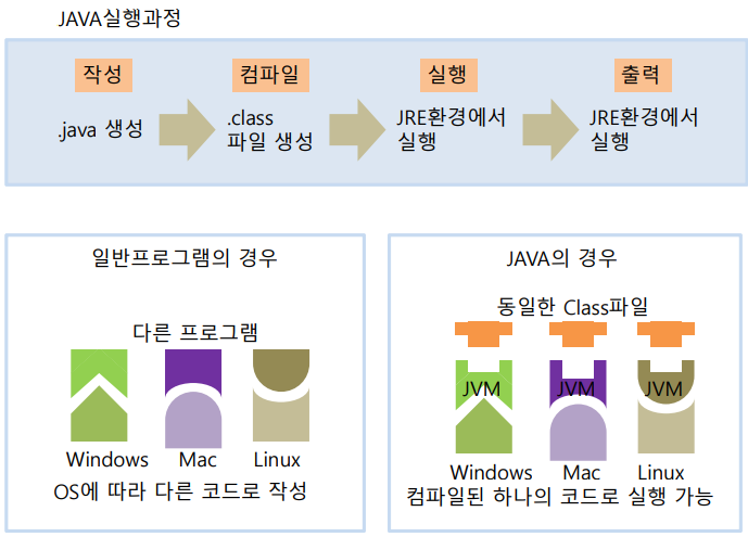 • 바이트 코드는 JVM(Java Virtual Machine)통해 실행