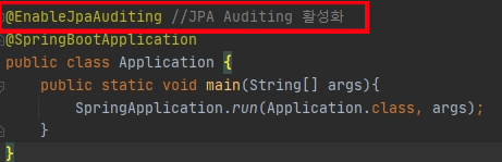JPA Auditing 어노테이션들을 모두 활성화할 수 있도록 Application 클래스에 활성화 어노테이션 추가