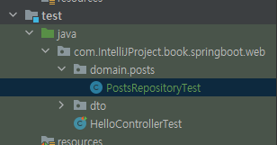 테스트 패키지 domain.posts에 PostsRepositoryTest 클래스 생성