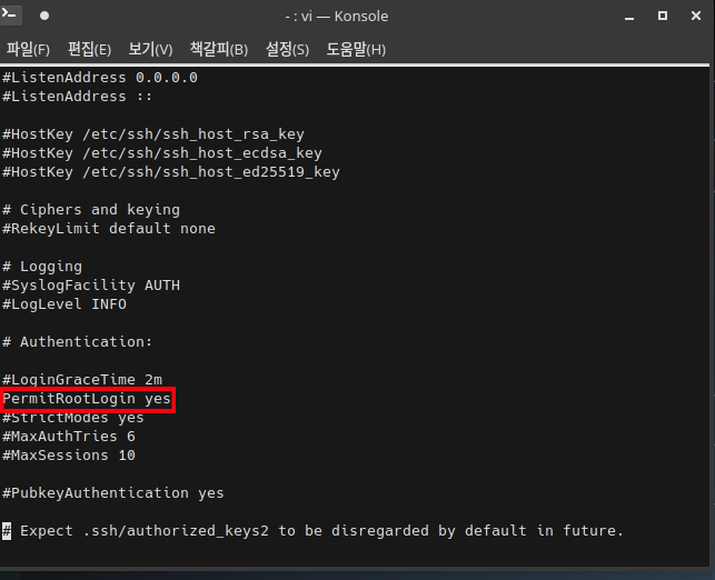PermitRootLogin의 without-password 부분을 yes로 변경