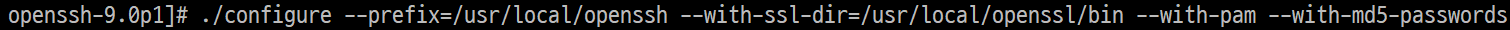 ./configure --prefix=/usr/local/openssh --with-ssl-dir=/usr/local/openssl/bin --with-pam --with-md5-passwords