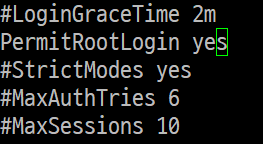 PermitRootLogin 주석 해제 및 yes로 변경