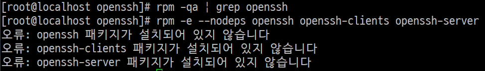 openssh 패키지 제거 후 확인