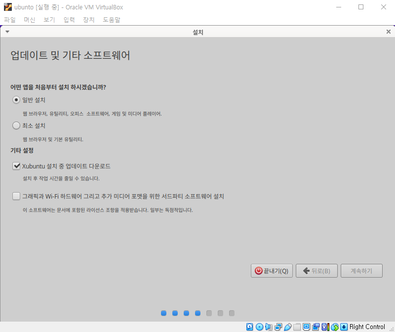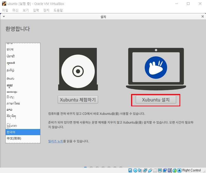 17. 한국어 선택후 Xubuntu 설치 클릭