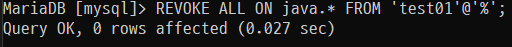 REVOKE ALL ON java.* FROM 'test01'@'%';