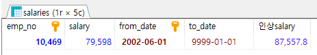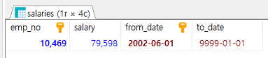 WHERE emp_no=10469 AND to_date='9999-01-01';