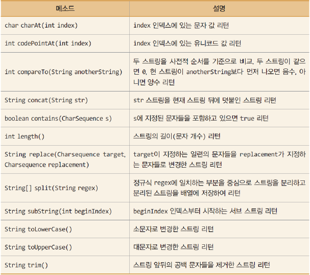 | String toString() | 현 객체에 대한 문자열 표현을 리턴 |